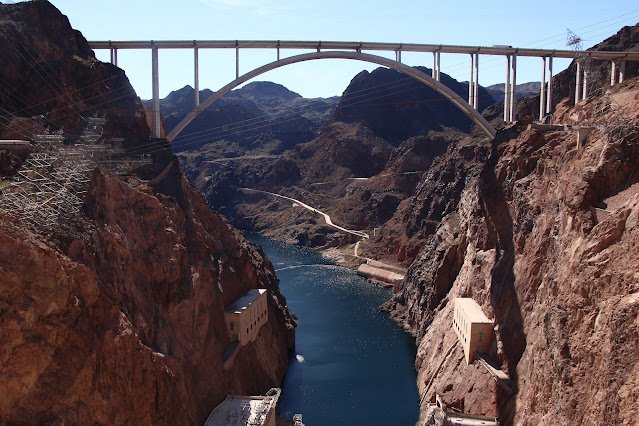 Hoover Barajı'na geçiyoruz, devasa bir baraj. Baraj köprüsünün bir tarafı Nevada bir tarafı Arizona eyaleti. İki eyalet arasında, yani köprünün başı ile sonu arasında, bir saat fark var. Köprünün üzerinden yürüyoruz, aşağısı Colorado Nehri'ne doğru devasa bir derinlik. Yapay olan baraj ve baraj göllerini sevmiyorum, dolayısıyla da bu barajın benim için çok bir çağrışım değeri olmuyor, ruhsuz bir mekan... Ama baraj inşaatı ile tüm boğulmuşluğuna rağmen Colorado Nehri hala çok güzel.